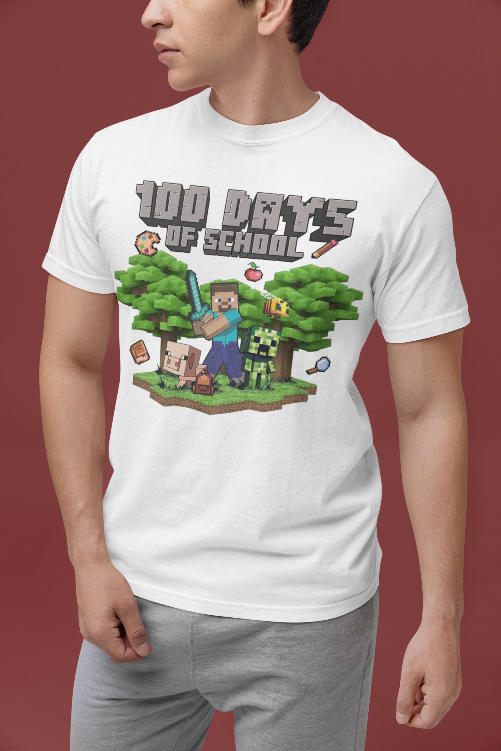تيشيرت قطني بتصميم شبابي بتصميم اللعبة الشهيرة ماي كرافت